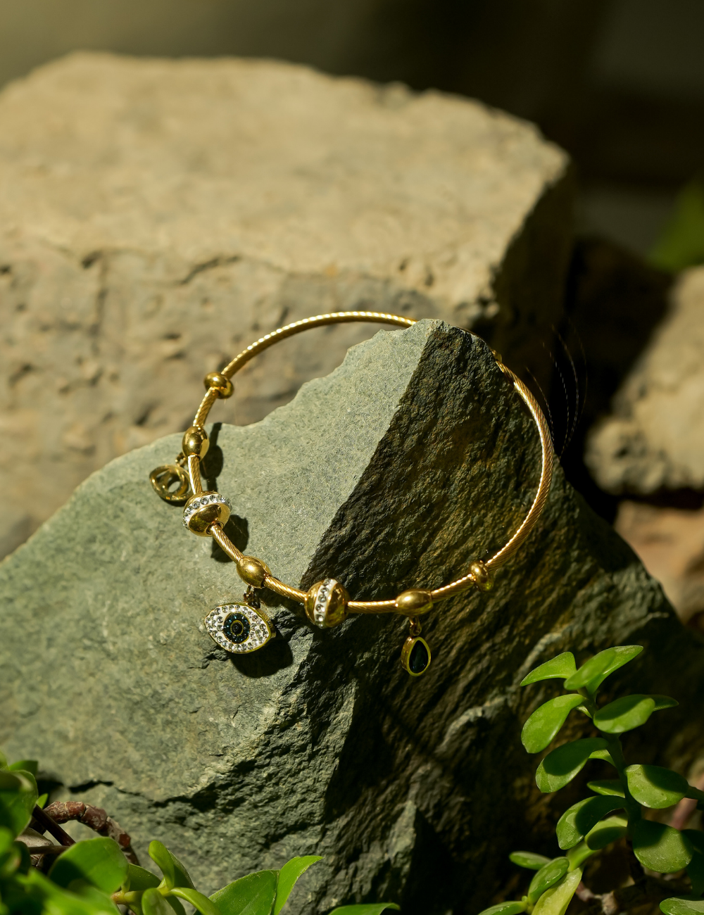 Add charm and grace to any outfit with the Gold Charms Wristlet. Plated in radiant 18K gold tone, this playful yet elegant piece features delicate charms that dangle gracefully, creating movement and sparkle with every gesture. Enhanced with shimmering Zirconia crystals, it offers a subtle shine that elevates its beauty.