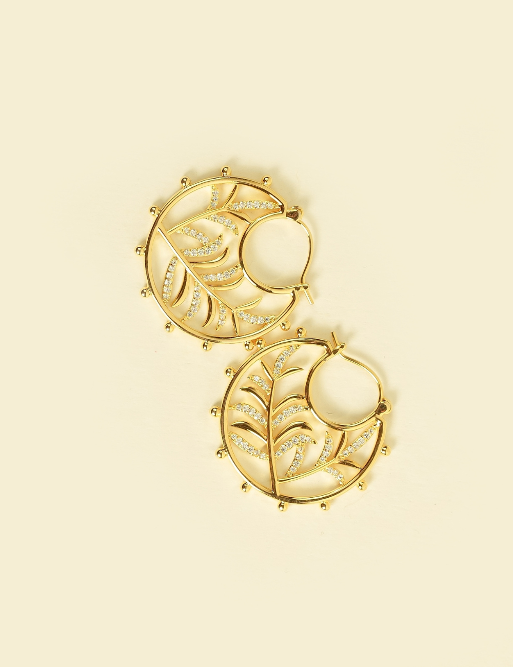 Inspired by nature, the Leafy Circle Dangler Earrings combine elegance with sparkle. Crafted from durable stainless steel and plated with 18K gold, these earrings feature a circular frame adorned with intricate leaf details and dazzling Zirconia crystals. Measuring L 2.9 cm x W 2.9 cm, their timeless design adds a refined touch to both casual and formal looks. Perfect for adding nature-inspired charm and brilliance to any outfit.